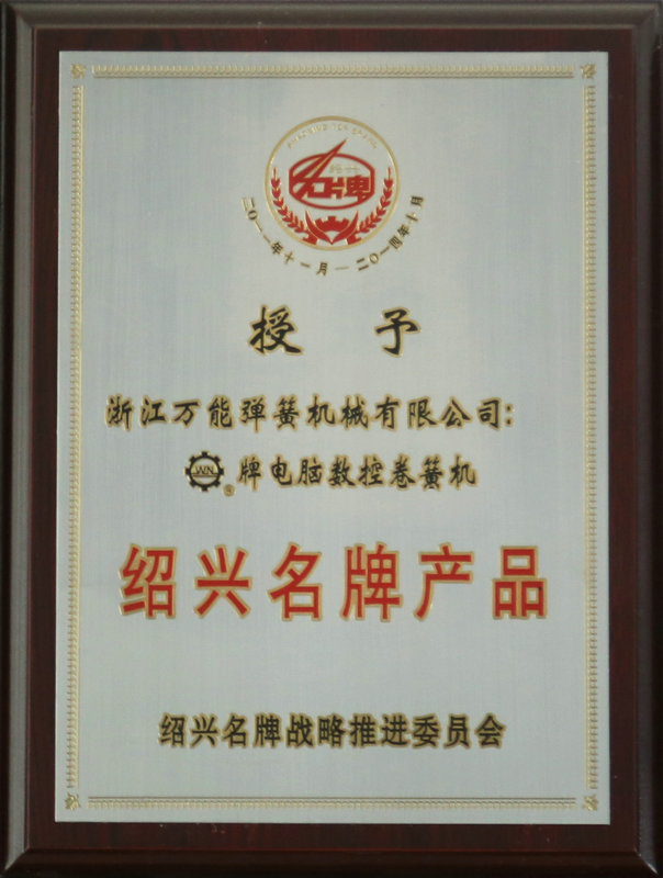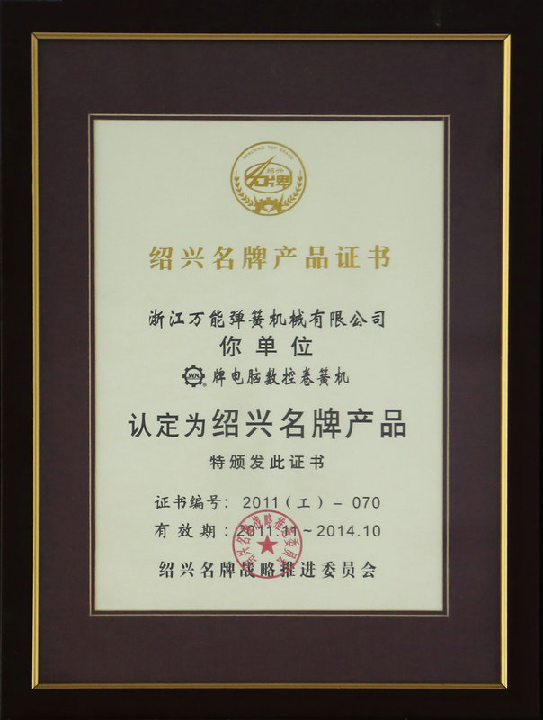 2011 Shaoxing ใบรับรองผลิตภัณฑ์ชื่อแบรนด์
